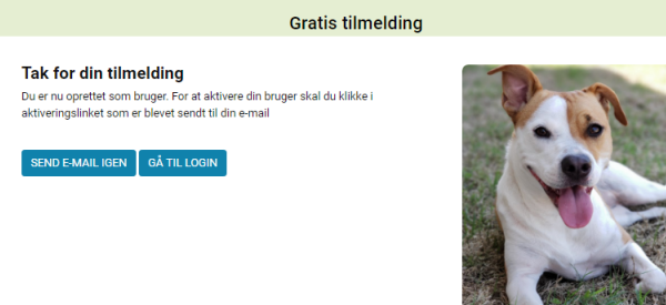 Du får derefter besked om der er sendt en aktiveringse-mail.